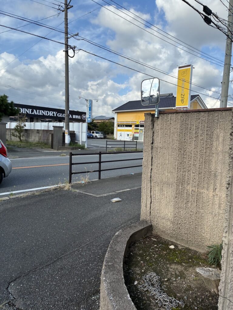 福岡本社営業所では、車両の出庫時の安全性を高めるため、出入口にミラーを設置しています。