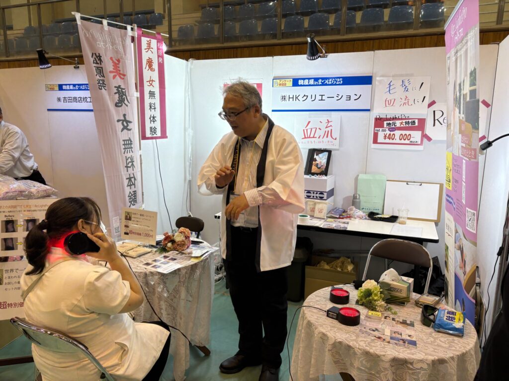 イベント両日とも、ブースにはたくさんの来場者の皆さまが足を運んでくださり、赤色LEDの美容機器Re:LightPro(リライトプロ)を実際に体験いただきました。体験後にその場でご購入いただくお客様も多く、ヘアケア・スキンケア商品への高い関心を実感する二日間になりました✨