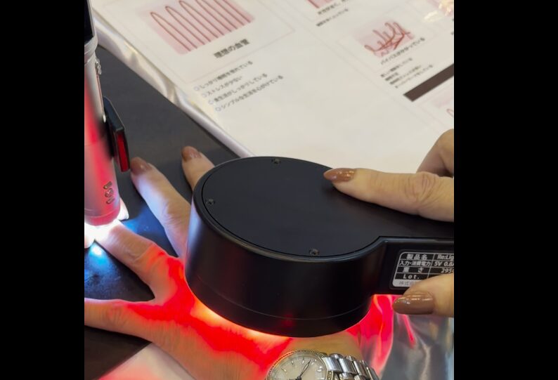 また、物産展に出展されていた企業様にRe:LightPro(リライトプロ)使用時の毛細血管の動きをスコープで確認していただきました。Re:LightPro(リライトプロ)使用時は、血流が活発に動く様子を見ることができました!