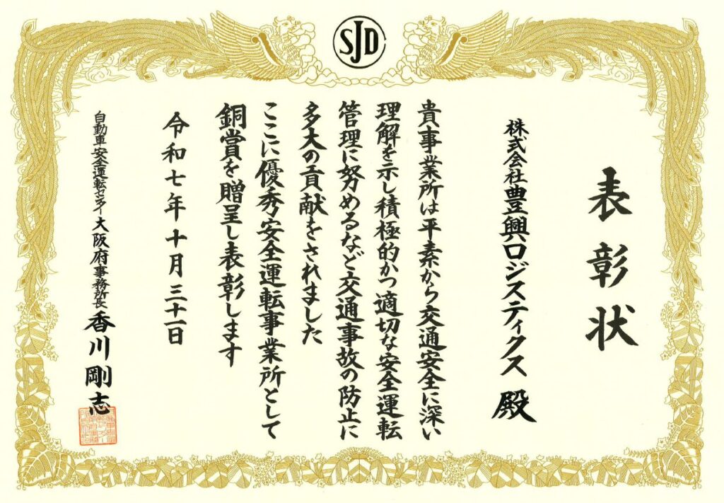 自動車安全運転センターが実施する優秀安全運転事業所表彰で、「銅賞」を受賞しました。