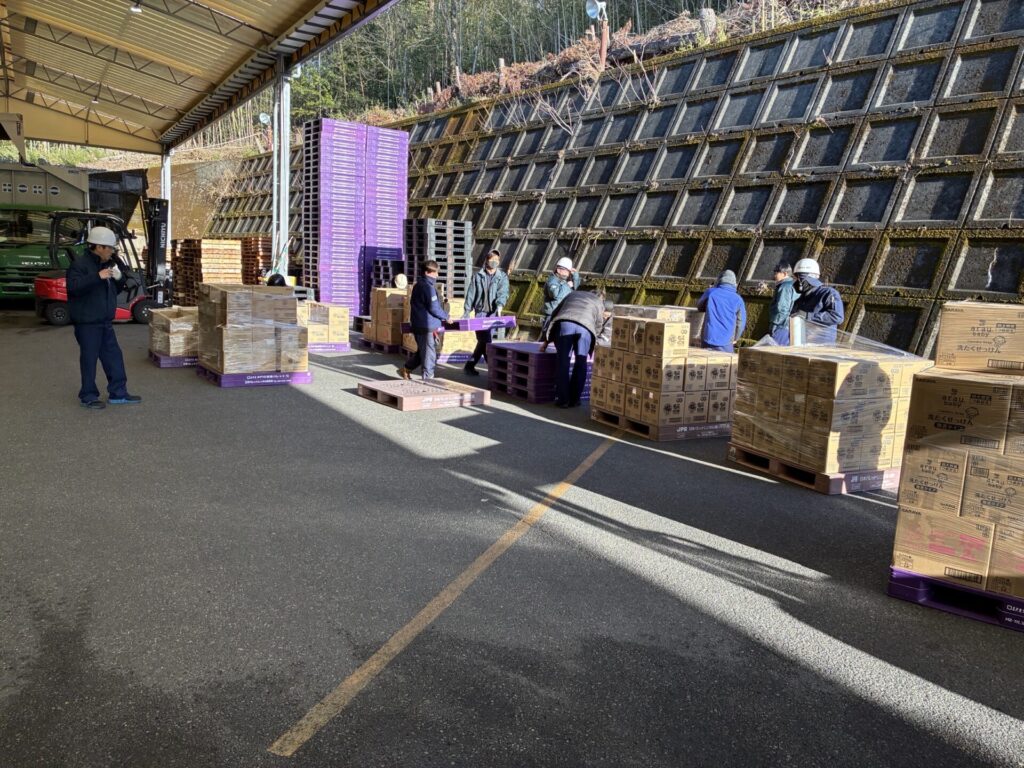 荷物の積み込みは、スタッフが協力して行います。